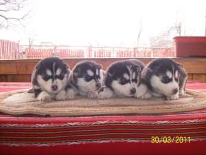 Vand catei husky rasa pura din parintii cu acte(pedigree) , alb cu gri si alb cu negru , ochi albastri masculi si female. Catei au doar 2 saptamani acum si se vand incepand cu varsta de 8 saptamani. Vor avea carnete de sanatate cu un vaccine si 2 deparazitari facute! Poze pe mail: ***** preturile sunt in functie de exemplar! Mai multe detalii: 0760482595 sau 0728230494! Nu sunati daca nu va intereseaza calitatea!